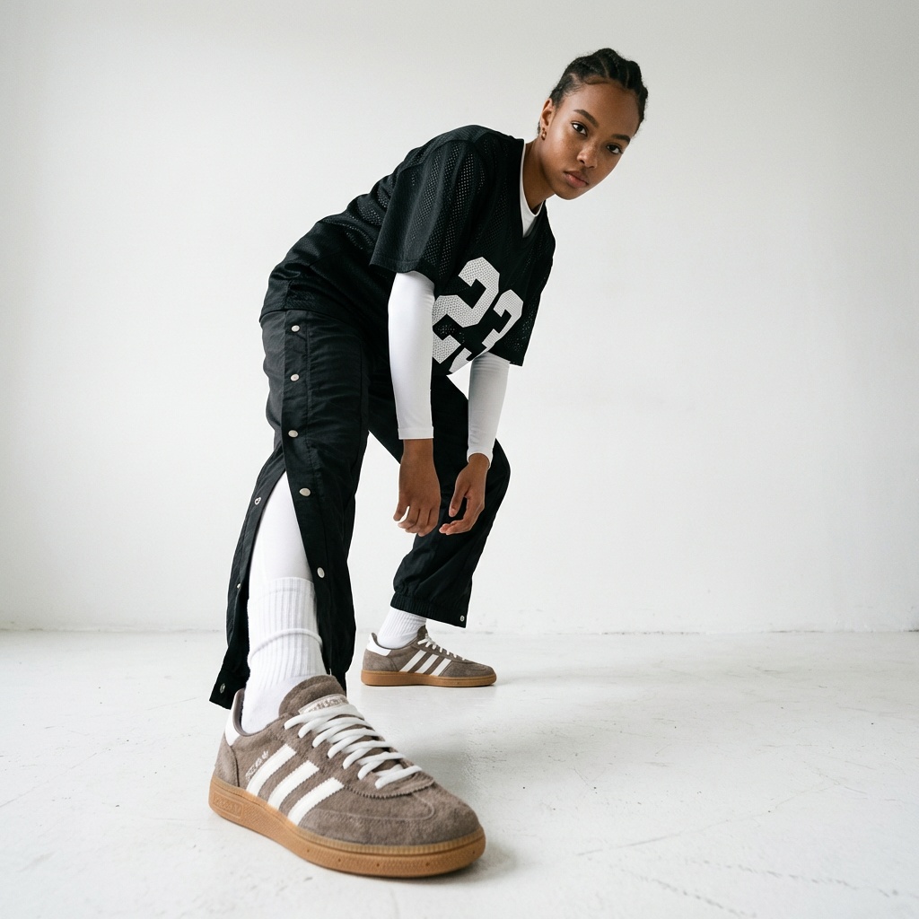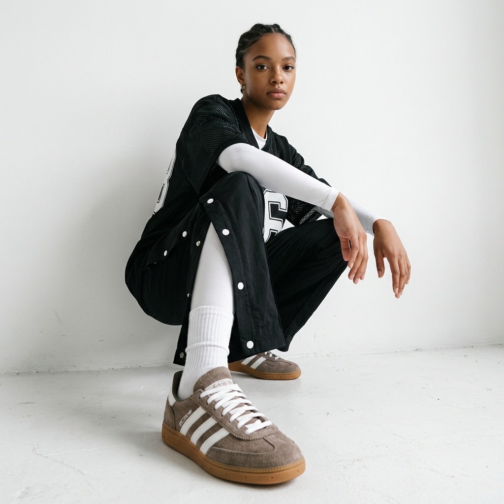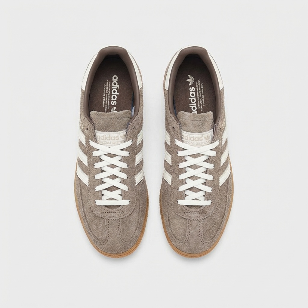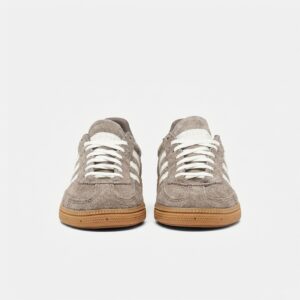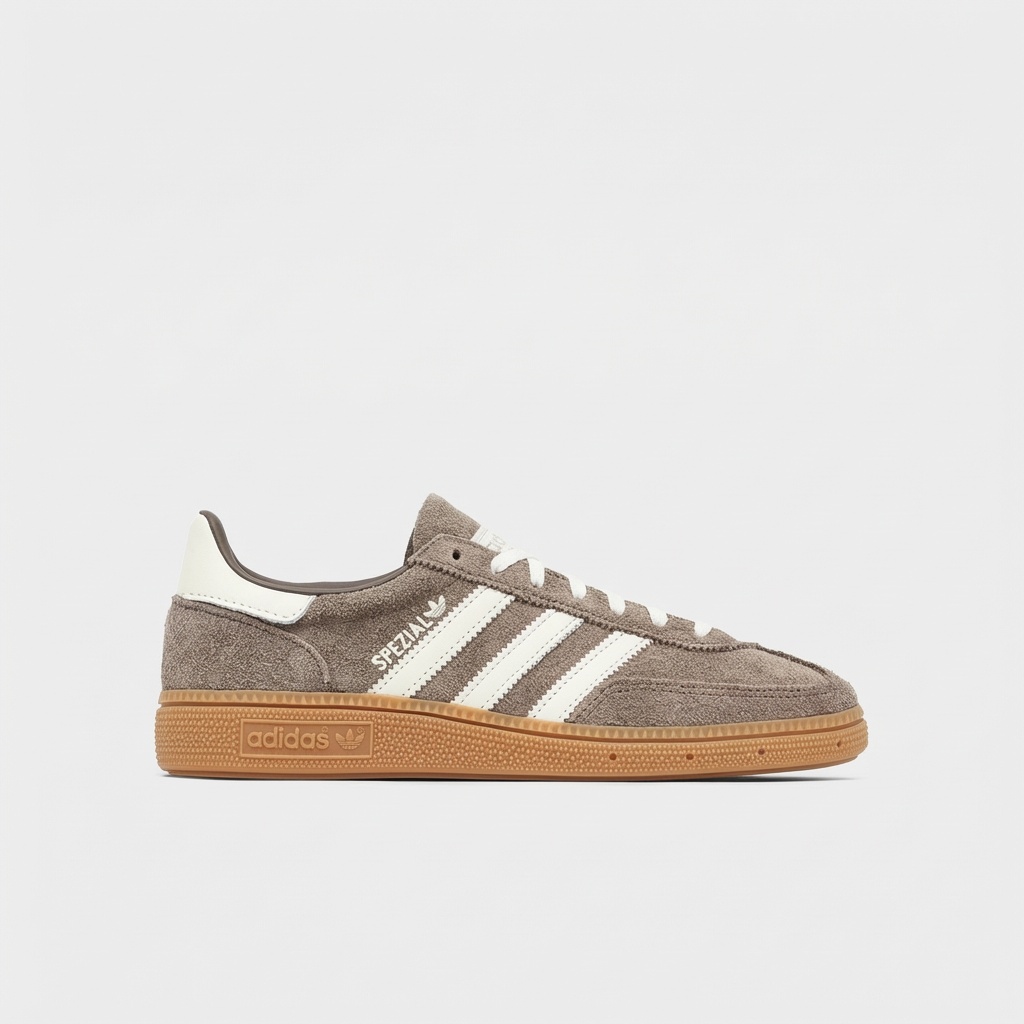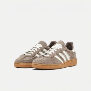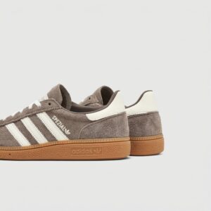 Model Handball Spezial to reimaginacja klasycznych butów halowych z lat 70. Wykonane z wysokiej jakości skóry zamszowej w naturalnym odcieniu Earth Strata z kontrastowymi białymi paskami marki. Gumowa podeszwa w kolorze naturalnego drewna zapewnia przyczepność i komfort.