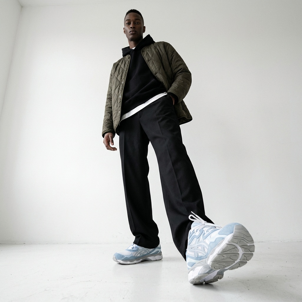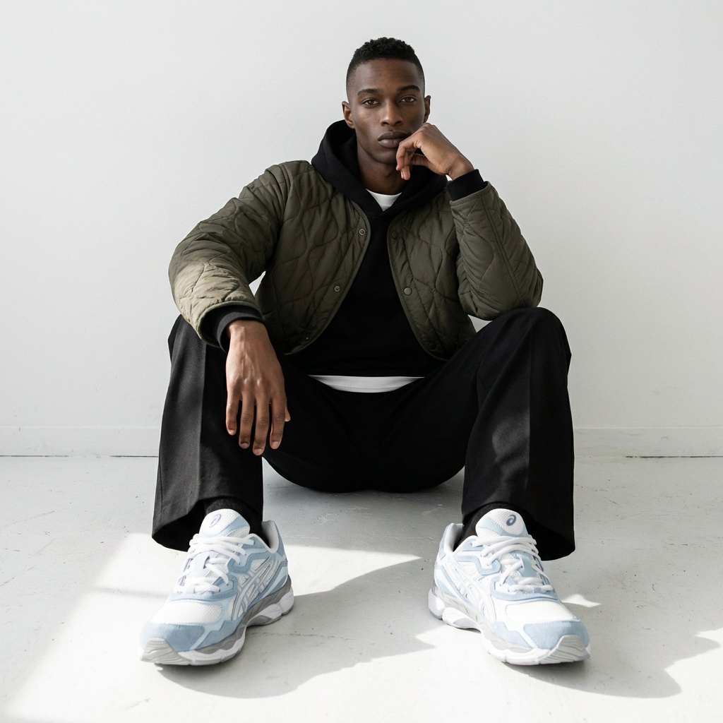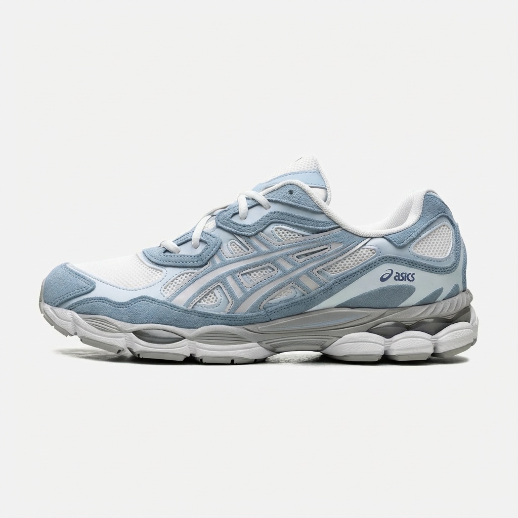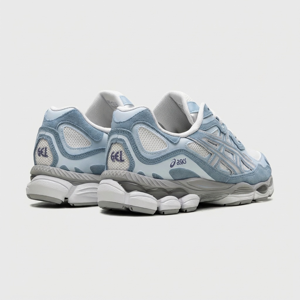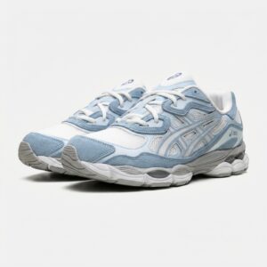 Model Gel-NYC kontynuuje dziedzictwo technologii ASICS, adaptując klasyczne rozwiązania do współczesnych standardów. Buty wyróżnia wielowarstwowa konstrukcja cholewki z panelami zamszowymi w błękitnym kolorze oraz białymi wstawkami z siateczki. Podeszwa środkowa wykorzystuje system amortyzacji GEL dla optymalnego tłumienia podczas ruchu.