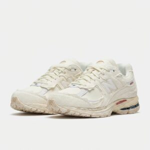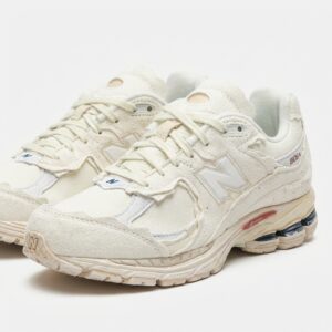 New Balance 2002R Protection Pack Sea Salt to sneakersy łączące klasyczny design z nowoczesnymi rozwiązaniami technicznymi. Wykonane z kombinacji skóry naturalnej i materiałów tekstylnych w kremowym odcieniu Sea Salt. Model wyróżnia się charakterystyczną podeszwą ABZORB z systemem amortyzacji oraz detalami w postaci kolorowych akcentów na pięcie i logo marki.