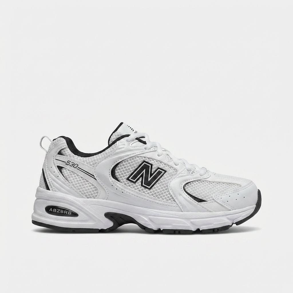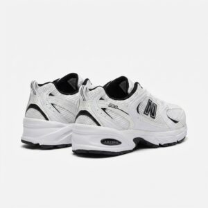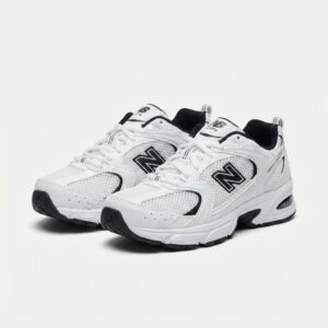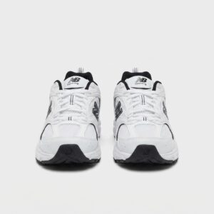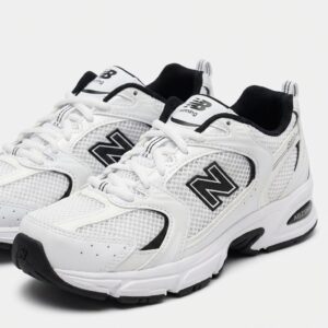 Buty New Balance 530 łączą retro design z nowoczesną funkcjonalnością. Biała cholewka z przewiewnych materiałów tekstylnych została uzupełniona syntetycznymi wstawkami dla większej trwałości. Charakterystyczne logo marki w czarnym kolorze podkreśla sportowy charakter modelu.
