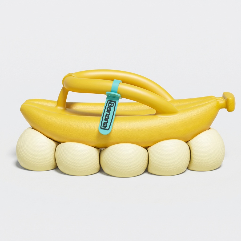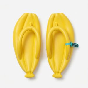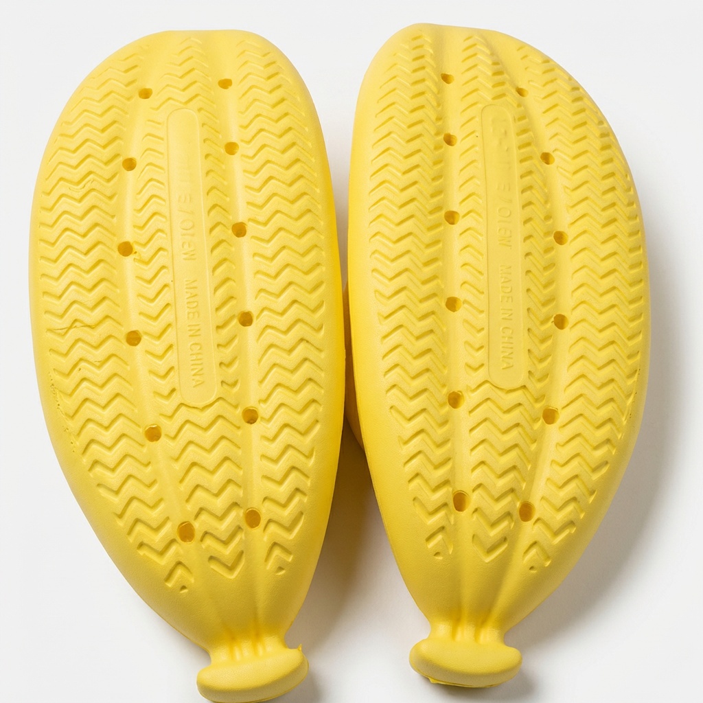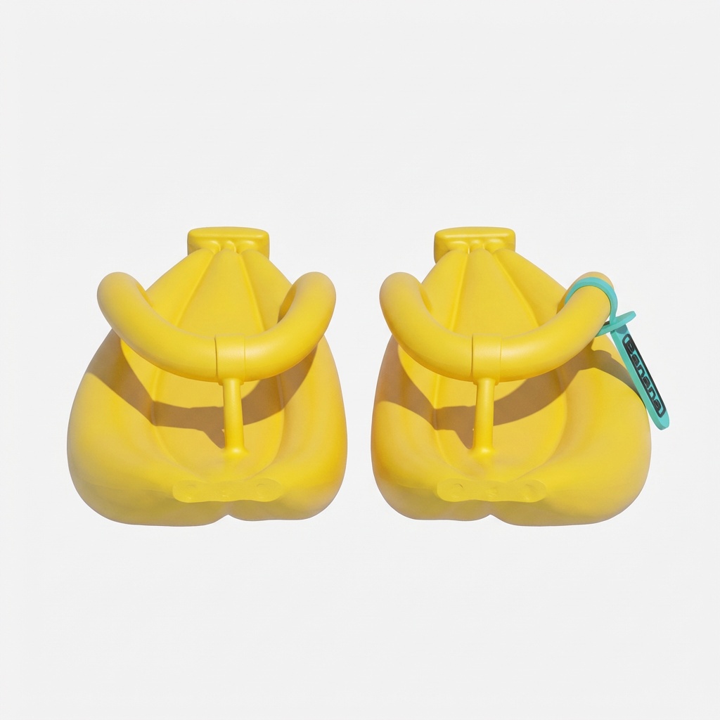 Kapcie w kształcie banana to designerskie obuwie domowe wyróżniające się oryginalną formą nawiązującą do popularnego owocu. Wykonane z pianki EVA w intensywnym żółtym kolorze, łączą funkcjonalność z nietypowym designem. Anatomiczny kształt podeszwy zapewnia stabilność, a miękki materiał gwarantuje komfort podczas użytkowania.